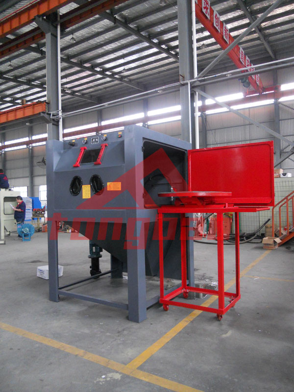 2013年5月9日 騰博機(jī)械生產(chǎn)的推車轉(zhuǎn)臺式液體手動噴砂機(jī)順利完工,即將對該手動噴砂機(jī)進(jìn)行最后的調(diào)試工作。該液體噴砂機(jī)是根據(jù)客戶數(shù)據(jù)進(jìn)行改良的非標(biāo)準(zhǔn)機(jī)型,整體高度有兩米,艙門尺寸及噴砂艙都有所擴(kuò)大,適合對較大工件進(jìn)行噴砂處理。如果調(diào)試順利預(yù)計(jì)下午就可以將這臺噴砂設(shè)備裝車送往客戶手中。通寶機(jī)械創(chuàng)建10多年,有著準(zhǔn)確的企業(yè)定位,專注于表面處理設(shè)備,用創(chuàng)新科技帶動產(chǎn)業(yè)!