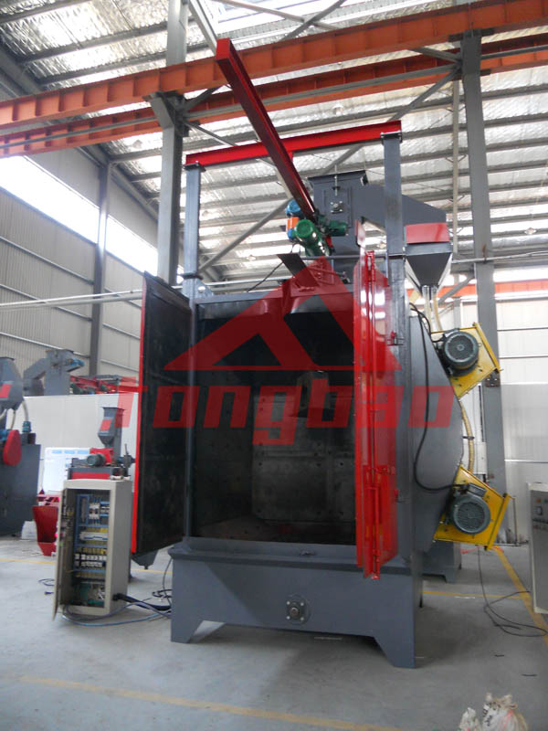 Tb-Q378C111型單吊鉤拋丸機按照客戶要求采用非標(biāo)制造,提高了吊鉤起重量及拋丸量,這臺拋丸機械具有拋丸量大、清理效率高、除塵效果好等特點。通寶系列拋丸機整體以灰色為主,艙門采用艷麗的紅色,產(chǎn)品整體效果美觀大方。