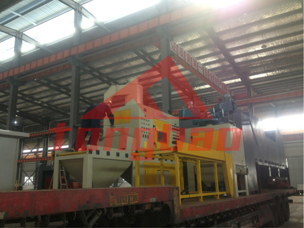 2012年11月29日 我公司為浙江奧靈格建材(系統(tǒng))有限公司生產(chǎn)的兩臺(tái)噴砂設(shè)備完成裝載,準(zhǔn)備發(fā)往海寧。這兩臺(tái)噴砂設(shè)備分別是大型輥道通過式拋丸機(jī)和輸送式自動(dòng)噴砂機(jī)。由于兩臺(tái)自動(dòng)噴砂機(jī)械較為龐大,給裝載過程增加了不少難度。
