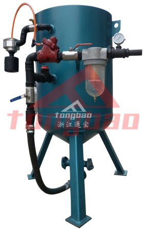 噴砂機(jī)的特點(diǎn)是設(shè)有進(jìn)氣壓力、噴砂壓力顯示,并裝有減壓閥,可以根據(jù)需要調(diào)節(jié)噴砂壓力。在壓縮空氣進(jìn)口裝有過濾器,以濾去壓縮空氣中的水分。